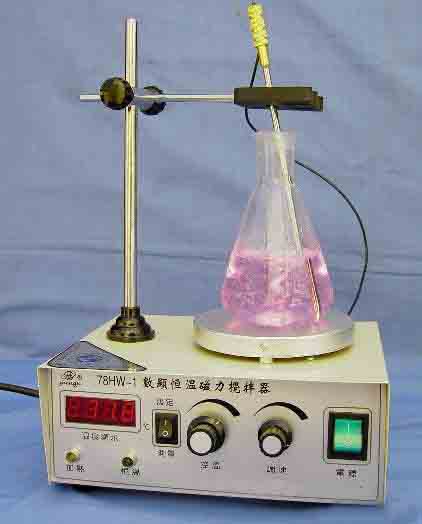 78HW-1恒溫磁力攪拌器是在原磁力加熱攪拌器的基礎(chǔ)上改進(jìn)而成的一種多用途、多功能、可控溫型加熱磁力攪拌器,能在較廣的速度、溫度范圍內(nèi)對液體溶液進(jìn)行精密穩(wěn)定的恒溫攪拌,特別適合攪拌小體積樣品。78HW-1恒溫磁力攪拌器采用直流電機(jī),噪音小,調(diào)速平穩(wěn);全封閉式加熱盤可作輔助加熱之用,可設(shè)定溫度及溫度顯示,數(shù)顯直觀;由聚四氟乙烯和磁鋼精制成的攪拌子,耐高溫、耐磨、耐化學(xué)腐蝕、磁性強(qiáng)。78HW-1恒溫磁力攪拌器廣泛用于石油、化工、醫(yī)藥衛(wèi)生、環(huán)保、生化、教育科研等企事業(yè)單位實(shí)驗(yàn)室。